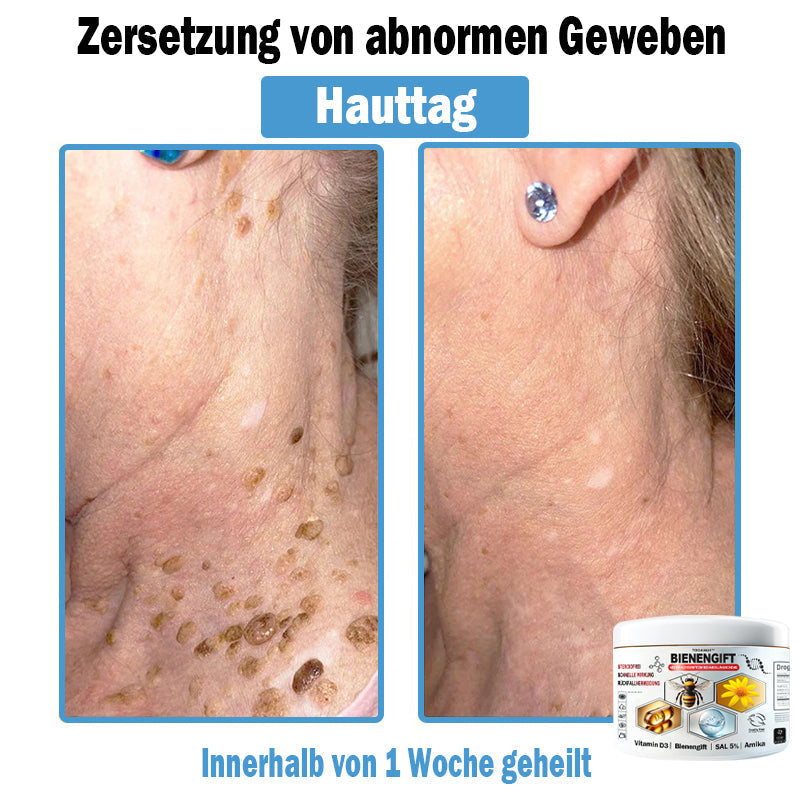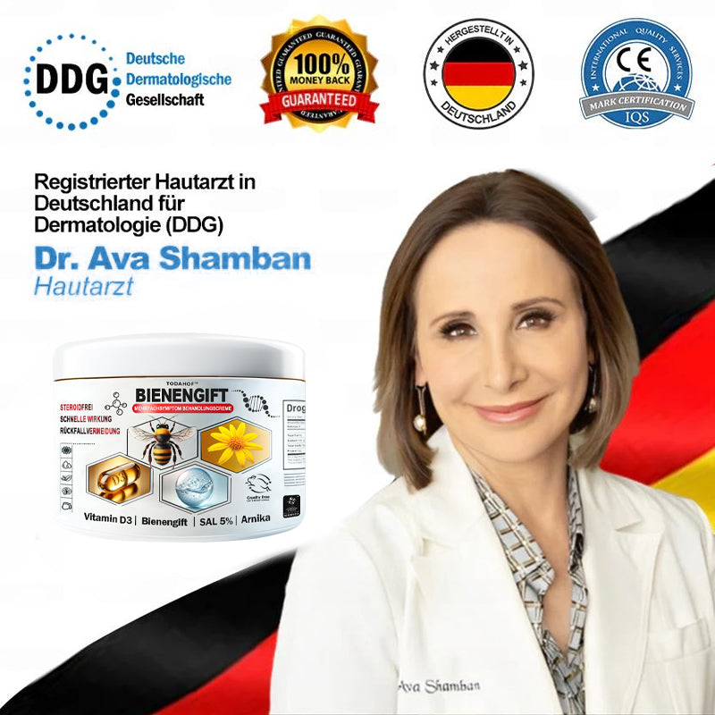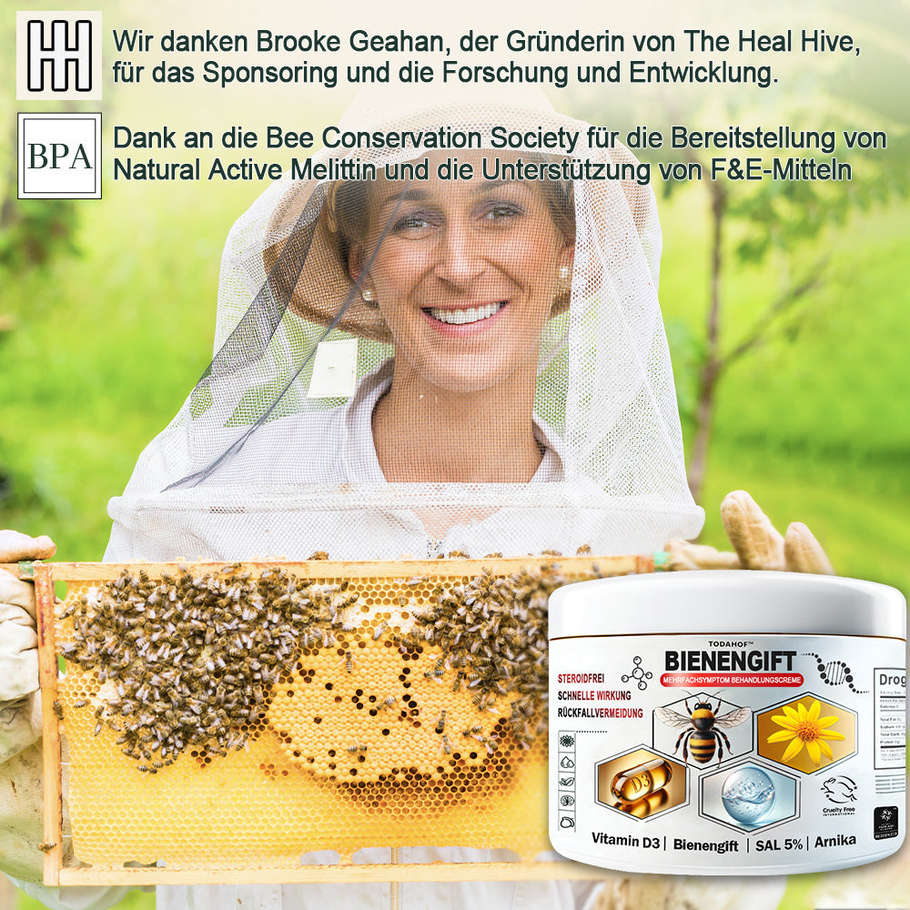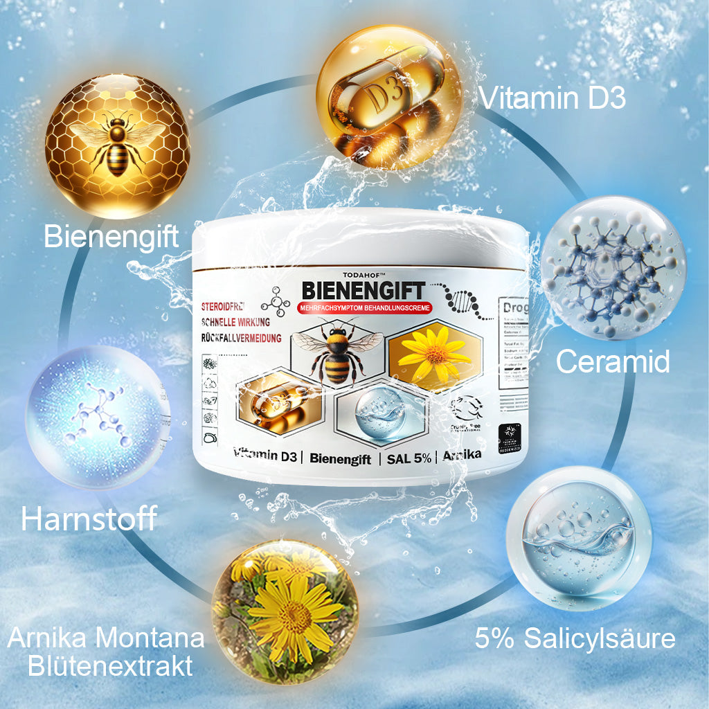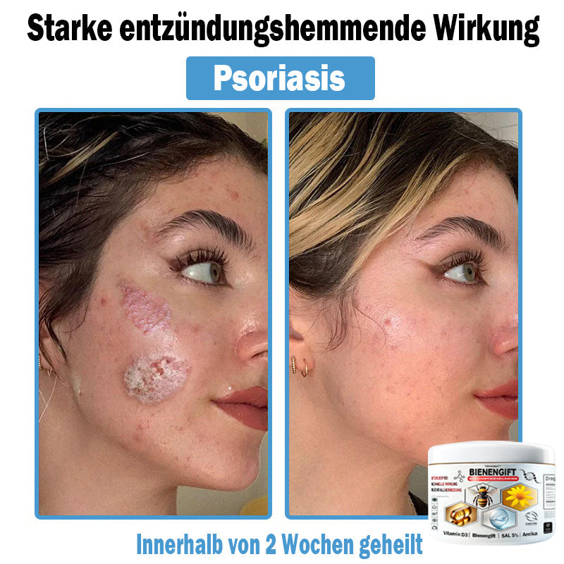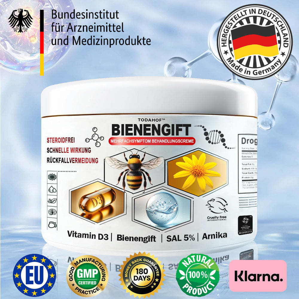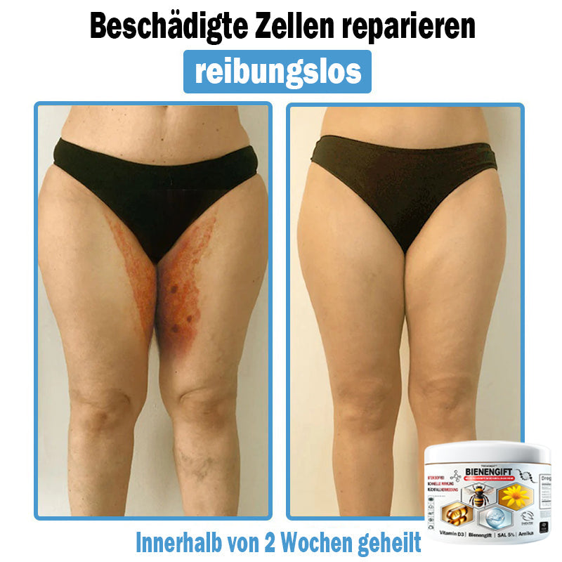 ๐ก๐๐พ๐๐พ๐๐๐๐ฟ๐ ist reich an bioaktiven Verbindungen wie Melittin, Apamin und Adolapin, die wissenschaftlich erwiesenermaรen Entzรผndungen reduzieren, indem sie Entzรผndungswege hemmen und die Blutzirkulation in den betroffenen Bereichen verbessern, so dass die Haut mit wichtigen Nรคhrstoffen versorgt wird. Die regelmรครige Anwendung dieser Creme kann chronische Hauterkrankungen wie Ekzeme, Schuppenflechte und Rosazea wirksam lindern und die Haut auf natรผrliche Weise glatter und gesรผnder machen.
